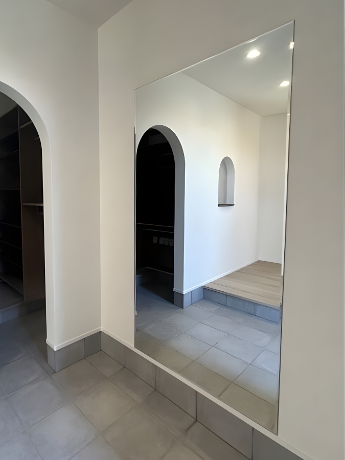 オーダーミラーなら、玄関のスペースに合わせてピッタリのサイズ、お好みの形状で製作可能です。