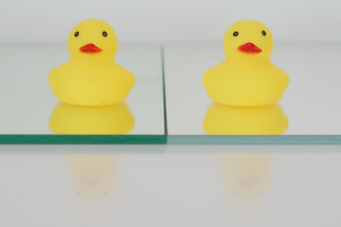 普段あまり意識されないかもしれませんが、普通の鏡は実際の色味より緑がかって映るため、実際の色味よりややくすんで見えます。