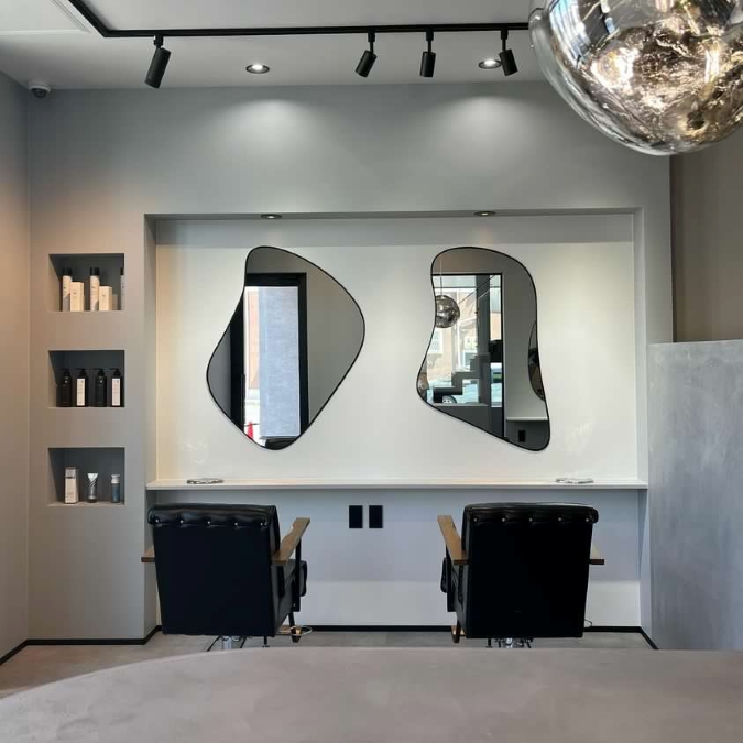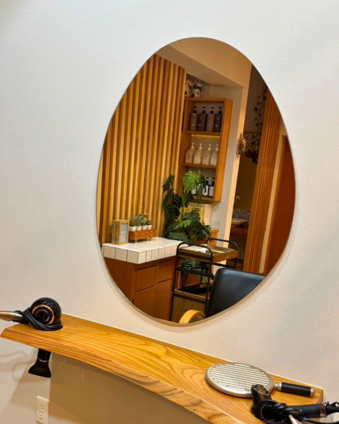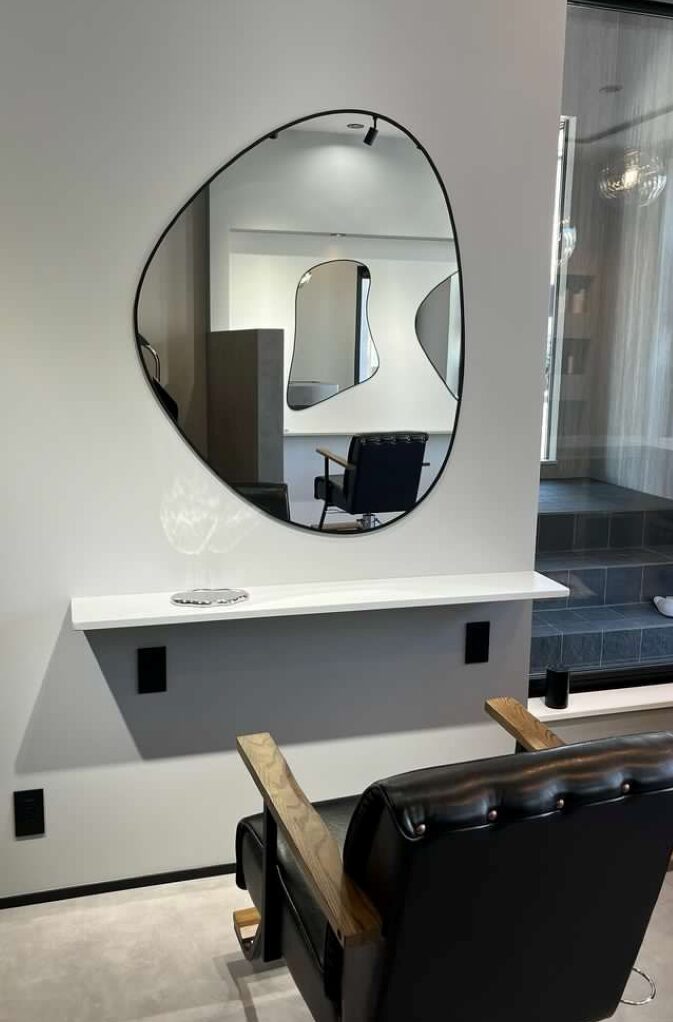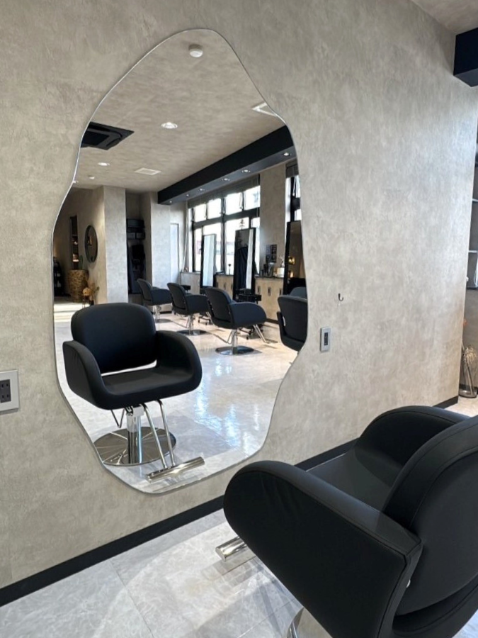 美容室の鏡は、カットやスタイリングの確認だけではなく、空間を明るく広く演出し、サロンの世界観を作る役割も持っています。